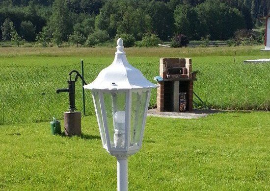 A brick barbecue in the garden and a nostalgic wood kitchen stove complete the cooking facilities.